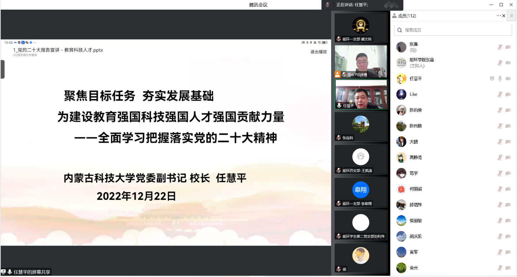 公司党委副书记、董事长任慧平教授为公司专题宣讲党的二十大精神