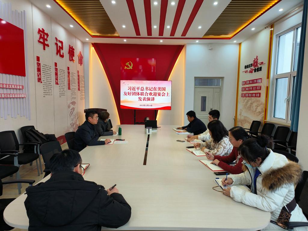 会议集中学习了习近平总书记向2023两岸企业家峰会10周年年会致贺信和习近平总书记在美国友好团体联合欢迎宴会上发表演讲,并观看相关学习视频。