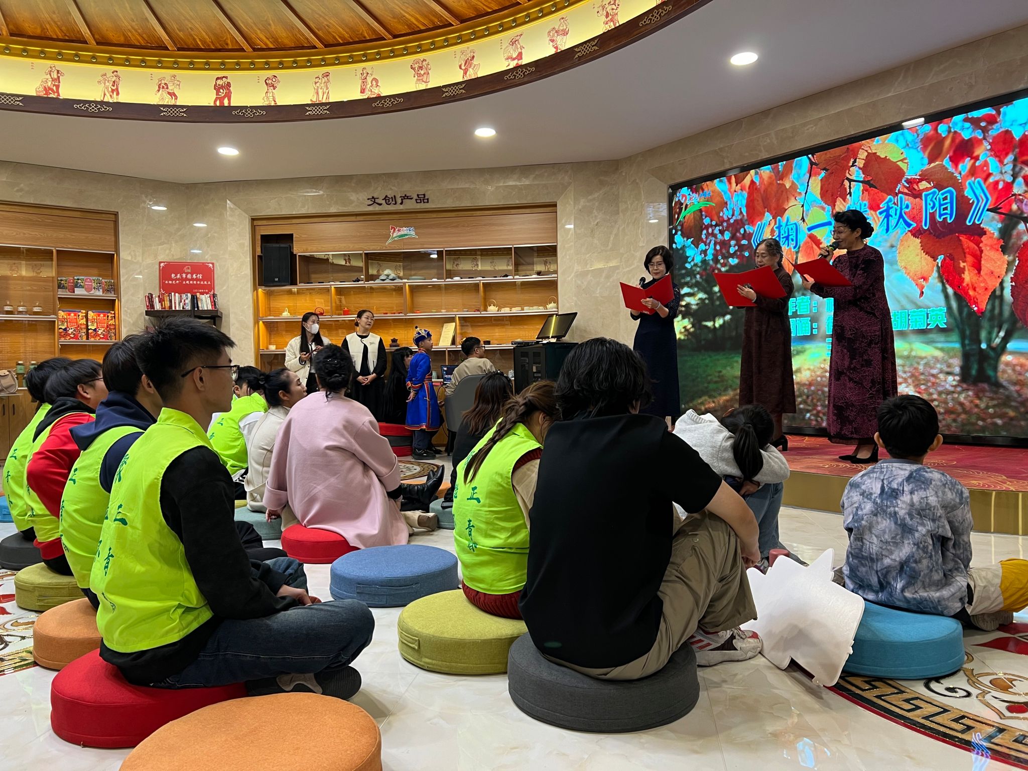 随后,员工第一党支部的党员以及积极分子们聆听了来自包头市图书馆、作家协会、老年大学等各位经验丰富的朗诵者、演唱者的朗诵以及演唱,更加深切的感受到了民族团结的温暖力量,也通过深情投入的朗诵,切身地感受到民族像石榴籽一样紧紧抱在一起,共同书写民族团结美好篇章的完美寓意!