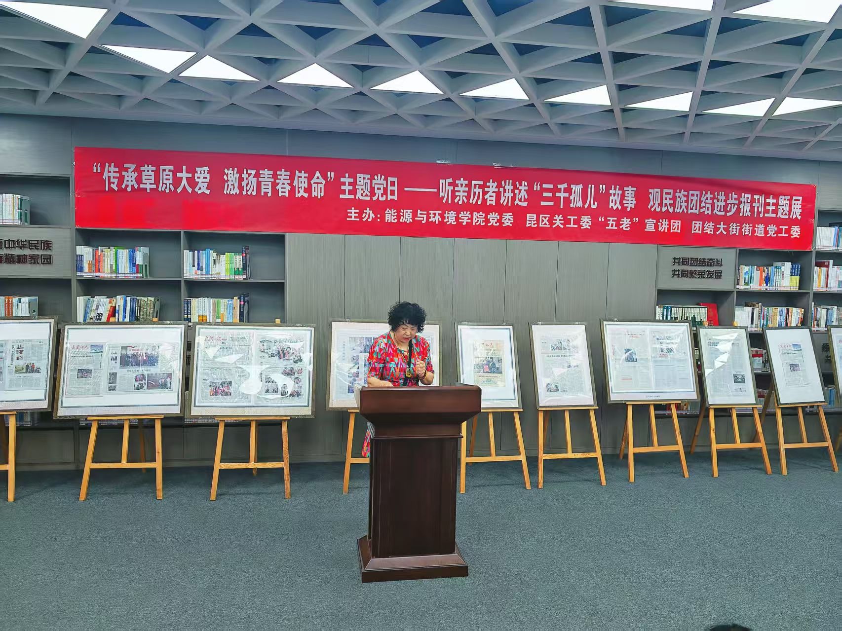 为深植家国情怀,传承民族团结精神,激发青年党员的历史责任感与时代使命感,2025年6月12日下午,公司党委与昆区关工委、团结大街街道党工委在图书馆石榴籽阅览室联合举办“传承草原大爱 激扬青春使命”主题党日活动。活动聚焦历史深处闪耀人性光辉的“三千孤儿入内蒙”故事,辅以珍贵的民族团结进步报刊主题展,特邀三位“国家的孩子”亲历者与见证者进行分享,为公司师生党员带来一堂生动而深刻的思政大课。