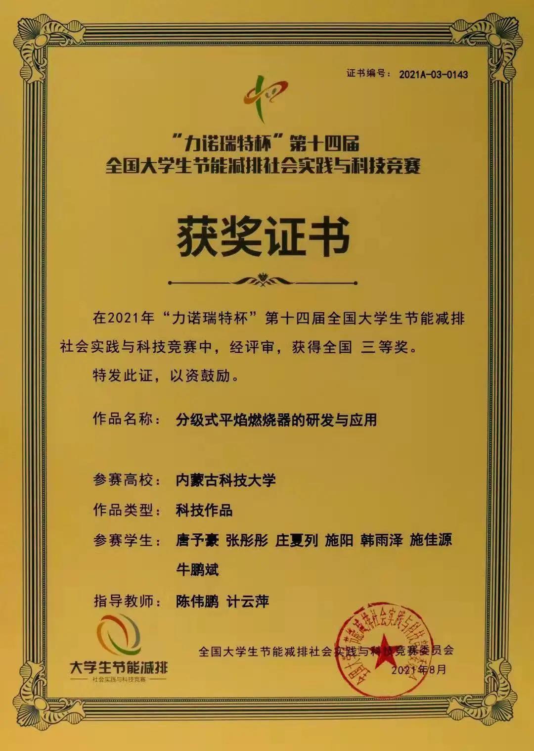 本届竞赛中,公司永利集团3044am唐予豪等同学的作品《一种分级式平焰燃烧器的研发与应用》、刘嘉晨等同学的作品《超静音无风空调舒适系统》、机械工程公司杨统勋等同学的作品《智能垃圾分类装置》、刘延振等同学的作品《烟气处理系统》、康寿臻等同学的作品《基于物联网+的智能光伏板清扫机》荣获了全国三等奖。