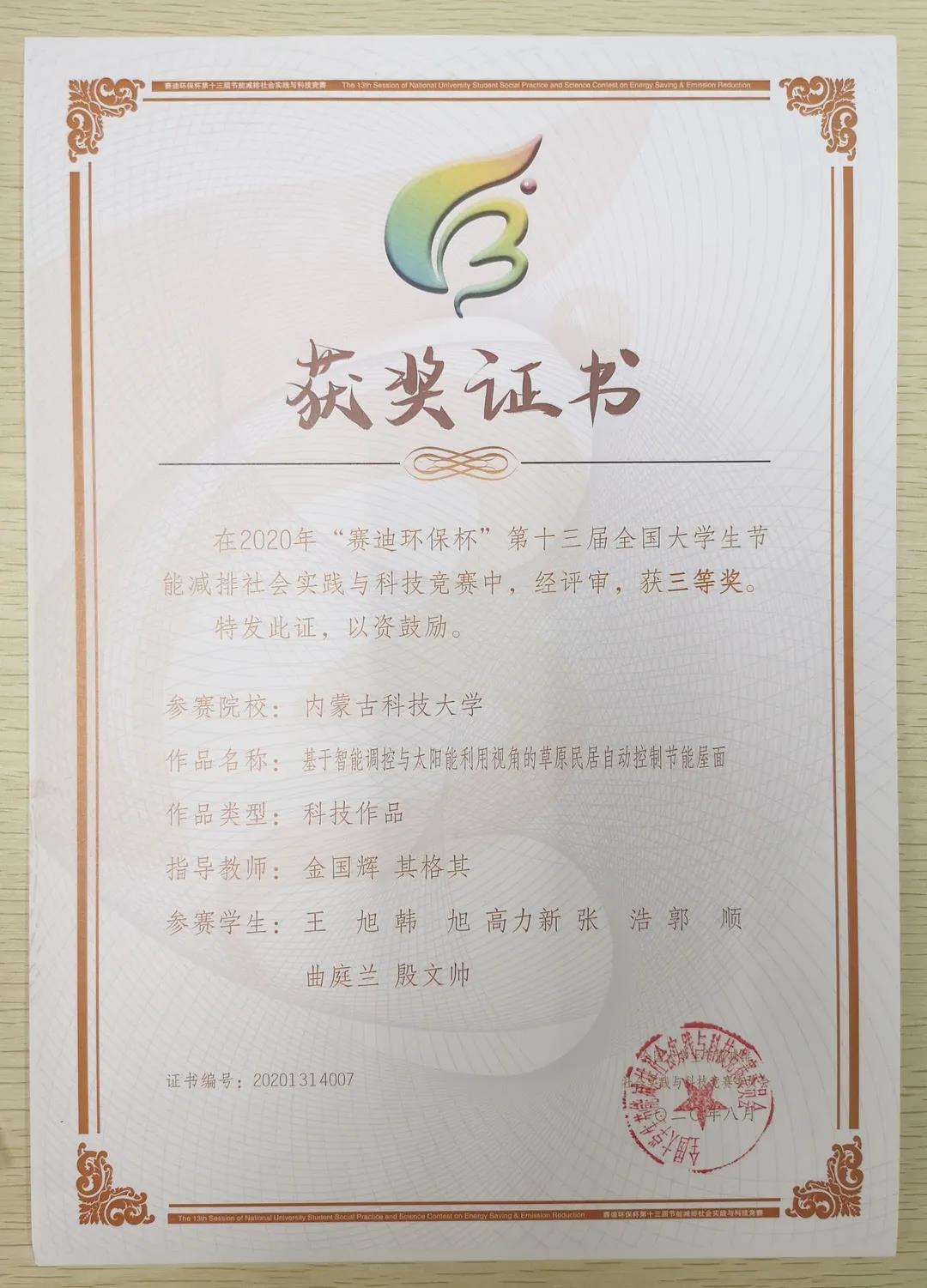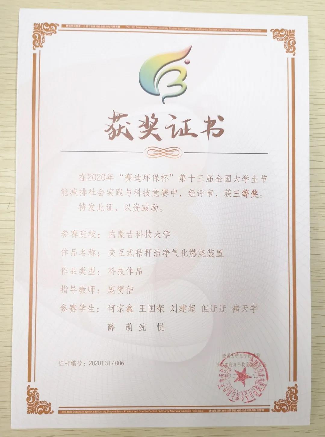 近日,由教育部高等教育司主办、重庆大学承办的“赛迪环保杯”第十三届全国老员工节能减排社会实践与科技竞赛圆满落幕。在本次大赛上,公司员工表现优异,共有6支团队荣获三等奖,其中永利集团3044am4项作品,土木工程公司1项作品,信息工程公司1项作品,获奖作品数量创公司在此项赛事的历届之最。