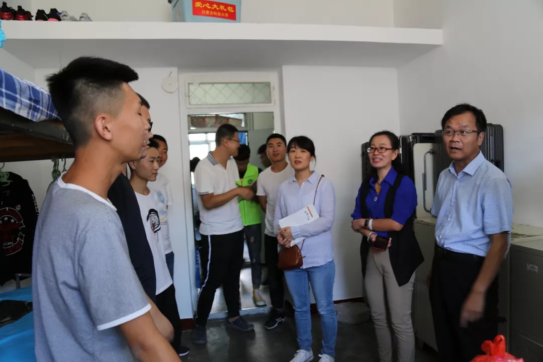 8月29日,公司党总支书记李卫平、党总支副书记、副经理孙岩柏带领公司辅导员、新生班主任来到新生宿舍,与同学们亲切交谈,向同学们传达公司的热情问候与殷切期望。
