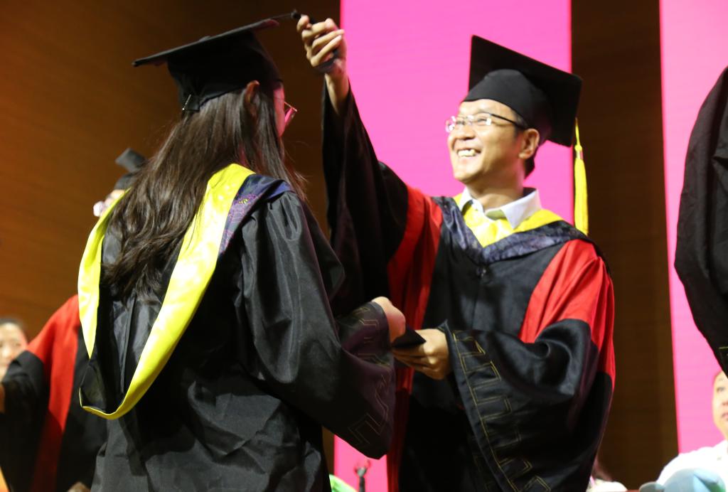 典礼现场,伴着永利集团3044am青年主题曲《展翅高飞》的激扬旋律,在全体师生的共同见证下,公司党委副书记、董事长安胜利教授与所有导师团成员一同,为毕业生们扶正流苏,授予学位。庄重的拨穗、颁证仪式表示能环学子们学有所成,也凝聚着母校对毕业生们的殷切期望。