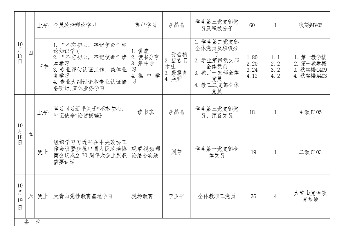 公司“不忘初心 牢记使命”主题教育一周工作安排(10.8-10.12)