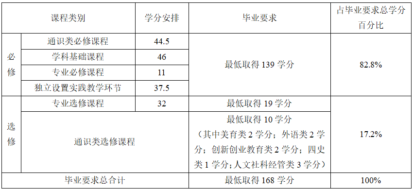 六、教育平台构成、学分安排、毕业学分及学位授予要求