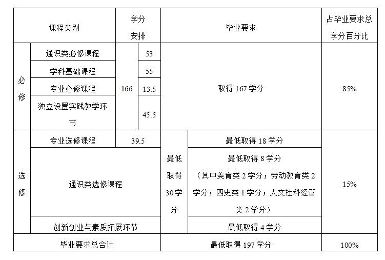六、教育平台构成、学分安排、毕业学分及学位授予要求